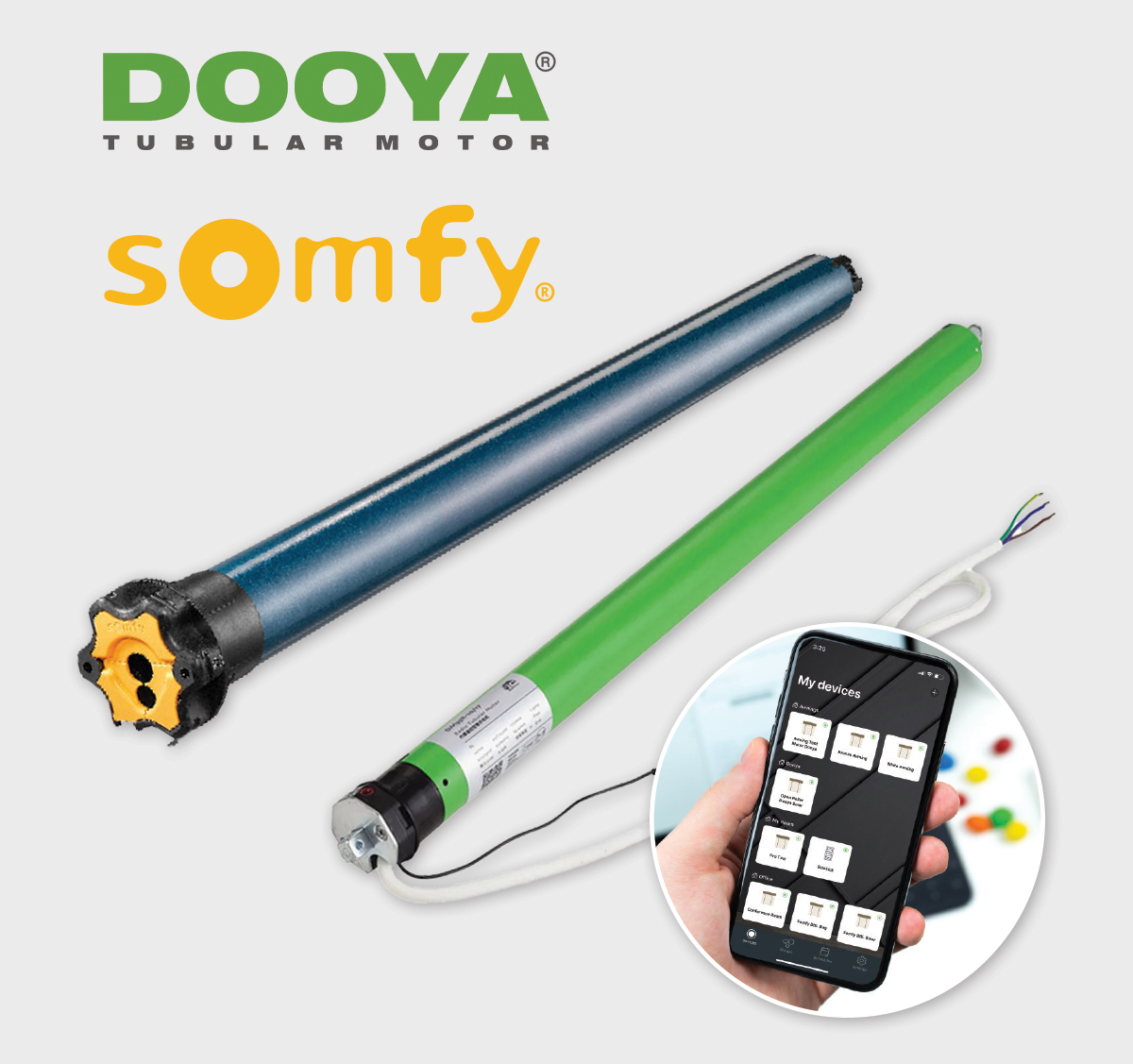 Choose between the impressive Dooya® Tubular Motor and the innovative Somfy® system. Both systems can be paired to any smart device for home automation.