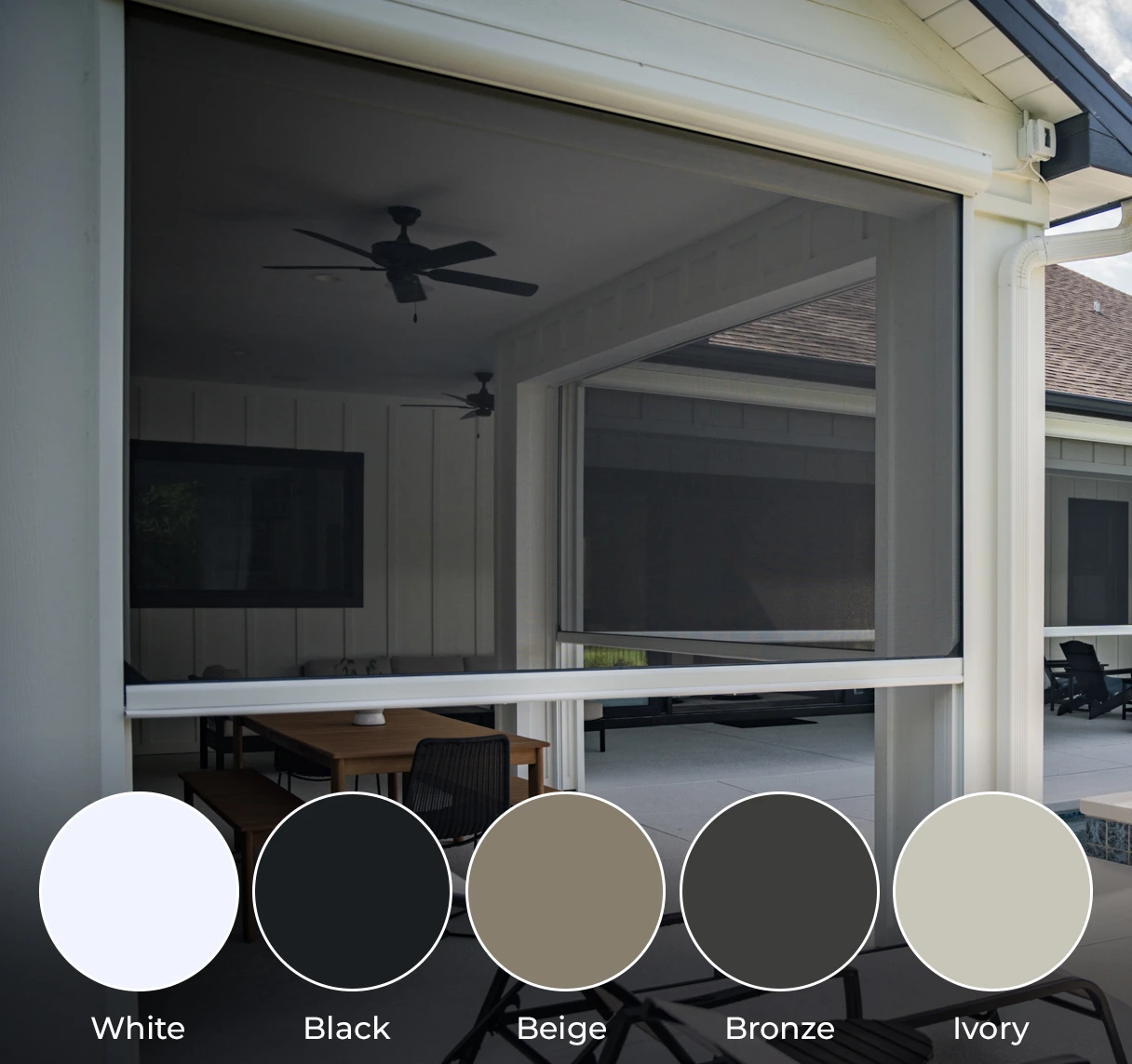 Our powder-coated, anti-corrosion, integrated cassette housing protects the fabric from weather damage, ensuring it lasts longer. Available in five popular colors: white, black, beige, bronze, and ivory. Custom color requests are also welcome.